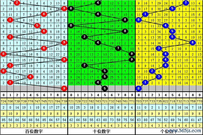 3.在以上9期奖号中,号码012路比区别开出0:2:1、0:0:3、0:2:1、1:1:1、0:2:1、0:1:2、0:1:2、1:1:1、1:0:2,012路出现个数比为3:10:14,本期瞻望开出012路比2:0:1。