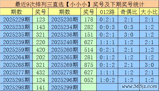 1.胪列三第2025298期奖号开出141,大小直选散播为:小小小,在历史开奖中直选【小小小】散播已开出942期,在前9次直选【小小小】散播中,出现奖号为:123-143-321-220-420-202-321-432-124,组三开出2期,组六开出7期。