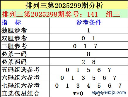 2.现在枚举三组六遗漏最大的六码组合为:012379,遗漏30期。本期防该组合解冻,即排斥剩余四个号码,存眷号码:7。